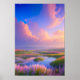 Cette oeuvre d'art numérique captivante présente un terrain plat époustouflant qui s'étend vers l'horizon, offrant une vaste étendue de beauté naturelle. Le premier plan est orné de fleurs colorées qui entourent un étang tranquille, tandis qu'au loin, une mer de fleurs et d'herbe verdoyante renforce encore le paysage à couper le souffle. Cette oeuvre est un complément parfait à toute collection d'art qui valorise la beauté de la nature.