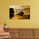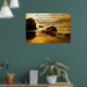 Avec une vue imprenable sur un coucher de soleil orange au-dessus de l'océan et les vagues qui frappent le rivage de l'océan Et un gros rocher sur le rivage avec les vagues qui s'éclaboussent contre lui...voici une belle photo sur cette affiche avec le texte disant. Jean 3:16 : Car Dieu a tant aimé le monde qu'il a donné son Fils unique, afin que quiconque croit en lui ne périra pas, mais ait la vie éternelle.