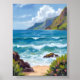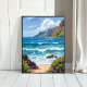 Affiche Ocean Shore Blue Waves Watercolor Painting