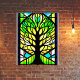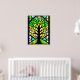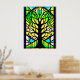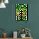 Ce vitrail au design d'inspiration art déco présente des lignes géométriques qui créent un motif symétrique. L'élément central du design est un arbre stylisé, rendu dans un style vitrail. L'arbre est composé d'une série de formes angulaires géométriques qui lui donnent un aspect audacieux et frappant. Les branches de l'arbre s'étendent vers l'extérieur, créant un sentiment de mouvement et de dynamisme dans le design. L'arrière - plan du motif est composé d'une série de formes symétriques. L'utilisation de formes géométriques et de motifs répétitifs est une caractéristique du style art déco, donnant à l'ensemble un sens de l'ordre et de l'équilibre. Les couleurs utilisées dans la motif sont vives et vives, avec une palette de tons verts dominant la palette. Ces couleurs donnent au design un sens de la vie et de l'énergie, tout en complétant l'effet de vitrail de l'arbre. Rendu à l'aide d'une technologie de pointe, ce vitrail est un design saisissant et attrayant.