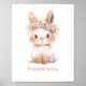 Aquarelle adorable et mignonne de bébé lapin avec des fleurs pastel rose et bleu pour la décoration murale de la nurserie. Personnalisez-la avec le nom du bébé.