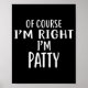 Affiche Of Course I'm Right, I'm Patty Novelty Humor