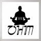Une silhouette d'un homme en position lotus, faisant des boucles de fil comme celles utilisées dans les atomiseurs réparables. Sous lui se trouve le mot Ohm, rappelant les unités de résistance électrique (toujours importantes pour les vapeurs) et la syllabe sacrée de l'hindouisme et du bouddhisme.