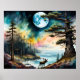 Grande orignal Marcher jusqu'à l'océan de la forêt sous une pleine lune IA Généré art par minx267
