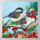 Affiche Oiseau De Pickadee Noir Cappé Avec Berries Glossy