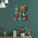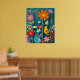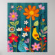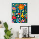 Oiseau jaune vibre parmi la flore et la faune vibrantes sur un arrière - plan turquoise/bleu/vert. Téléchargement instantané Grande impression 24x30. Peut être réduit dans le même format d'image.