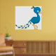 Affiche Oiseau Paon Bleu de Dessin Animé