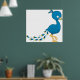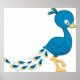 Affiche Oiseau Paon Bleu Dessin Animé