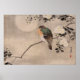 Oiseau perché sur une branche d'un arbre en fleurs. Peinture à l'aquarelle japonaise vintage.