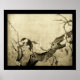 Affiche OISEAU PRINTANIER ET ARBRE FLEURI Marron Sépia
