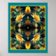 Imaginaire oiseau contre ma photo de fleurs marguerites jaunes carrelées abstraites. Design et photographie par Susan. Visitez ma boutique sur SmilinEyes Posters pour plus de photos de fleurs, d'animaux, de la nature et des dessins d'arts numériques.