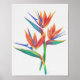 Poster De Dessin D'Oiseau Tropical Du Paradis. Arbre fleurs colorées Bird Of Paradise aux couleurs orange rouge vert et bleu. Art de Inanna Serene Smith.