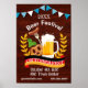 Invitation pour la fête de la bière Oktoberfest avec une tasse à bière, bretzel, saucisse, une bannière ruban aux couleurs du drapeau allemand, drapeaux bavarois sur le dessus pour célébrer l'Oktoberfest à l'automne.