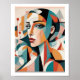 Portrait cubiste captivant représentant une femme mystérieuse dans le style géométrique iconique de Picasso. Cette oeuvre d'art moderne saisissante révèle la beauté féminine à travers des fragments angulaires et des ombres hantantes.