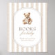 Un endroit charmant pour les départs de livres. Ce panneau présente des rayures d’aquarelle douce, un ours en peluche vintage et une écriture élégante — guidant les invités à laisser les livres qu’ils ont apportés à la bibliothèque du bébé.