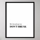 Présentant notre "Nous nous plions pour ne pas casser l'affiche", une oeuvre d'art puissante qui incarne la résilience et la force. Cette affiche présente un design minimaliste avec une citation motivante qui sert de rappel quotidien pour rester flexible et résilient face aux défis. Parfait pour décorer votre maison, votre bureau ou votre espace de travail, il ajoute une touche d'inspiration et de positivité à tout environnement. Que vous soyez à la recherche de motivation pour vous-même ou que vous cherchiez à élever les autres, cette affiche fait une déclaration significative. Tags : Art mural inspirationnel, Poster de résilience Motivationnelle, Décor minimaliste, OEuvre de bureau moderne, Impression d'esprit positive, Art de citation encourageante, Décor d'esprit résilient, Poster de motivation forte, OEuvre d'attitude flexible, Impression d'expression responsabilisante, Décor de mur de résilience audacieuse, Poster de citation inspirante, Impression d'esprit robuste, OEuvre motivante durable