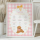 Celebrate your little one’s first year with this adorable “My Golden Year” milestone poster! Featuring a soft pink gingham background, scalloped frame, and a sweet golden doodle puppy with a pink bow, this first birthday milestone sign is the perfect way to showcase your baby’s favorite things, milestones, and memories.