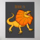 Affiche Orange Frilled Neck Lizard Cartoon Illustration Ba