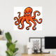 Affiche Orange Octopus Cartoon Ocean Sea Creature