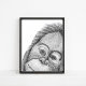 Affiche Orangutan Singe noir et blanc Ligne murale