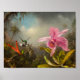 Affiche mettant en vedette l’orchidée à huile de Martin Johnson Heade avec deux colibris (1871). Deux colibris glorieux perchent à côté d'une belle orchidée rose. Un bon cadeau pour les amateurs de colibris et les amateurs d'art américain !
