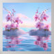 De délicates orchidées roses fleurissant sur de petites dunes de sable qui s'élèvent au-dessus de eaux calmes et réfléchissantes. L'arrière-plan présente un ciel à dégradé doux avec des teintes délicates de bleu, de rose et des nuances de formations nuageuses, créant une atmosphère tranquille. Les orchidées, avec leurs pétales vibrants et leurs variations subtiles de teinte, ajoutent une touche d'élégance et de beauté, parfaitement reflétées à la surface de l'eau, renforçant le sentiment général de tranquillité et d'harmonie de la scène.