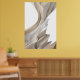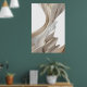 Soft, flowing lines in neutral tones create an abstract, layered effect that resembles delicate folds of fabric in front of a white background. The harmonious blend of beige, cream, and white adds a serene, calming quality to the composition.
