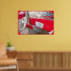 Lg. Impression brillante d'une voiture rouge classique, volant, tableau de bord, vintage,©jlp