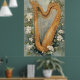 An ornamental harp surrounded by white flowers. Here are some details about this instrument: