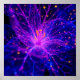 A spectacular bloom radiating cosmic energy with threadlike stamens glowing like a celestial firework—a surreal bioluminescent art print