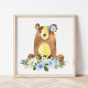 Affiche Ours, Animaux Boisés, Boho, Fleurs Bleues