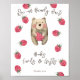 Invitations de douches pour bébés sans sexe. Avec le dicton "NOUS POUVONS ATTENDRE AVEC BEARLY!", une illustration d'un ours d'aquarelle avec framboise en pattes, et beaucoup de baies rouges. Éléments correspondants disponibles.