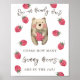 Invitations de douches pour bébés sans sexe. Avec le dicton "NOUS POUVONS ATTENDRE AVEC BEARLY!", une illustration d'un ours d'aquarelle avec framboise en pattes, et beaucoup de baies rouges. Éléments correspondants disponibles.