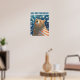 Poster avec le graphisme époustouflant d'un ours rêveur avec des rayures rouges et blanches autour de ses épaules comme une couverture, sous un ciel étoilé. Un message de motivation disant "Tenez-vous à vos rêves." Si vous aimez l'oeuvre d'art mais pas le message, vous pouvez le changer à ce que vous voulez. Cette belle affiche d'ours fait partie d'une série d'animaux américains.
