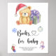 "Il y a un bébé beary Sweet en route". Célébrez avec cette soirée baby shower à thème ours en peluche ! Aquarelle ours en peluche mignon avec cadeau de noël, en chapeau santa. Au verso de la carte se trouvent le motif de Noël des Fêtes (sucre de canne, jouet à billes d'arbre de Noël, chaussettes de Noël). Éléments correspondants disponibles.