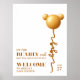 Cette création a été inspirée par le charme d'un ballon doré en forme de petit ours en peluche, flottant pour annoncer une arrivée très spéciale. Avec sa palette neutre douce et sa typographie moderne, cette affiche apporte une touche chaleureuse et élégante à l'espace de toute baby shower.