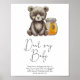 Nous pouvons attendre avec impatience une invitation baby shower. Cute dessin crayon petit ours et jarre avec miel - invitation baby shower. Éléments correspondants disponibles.