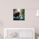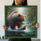 Un tableau montrant un ours et un poisson gracieusement entrelacés dans une rivière. L'ours se dirige vers le poisson alors qu'il nage avec élégance contre le courant, créant une scène harmonieuse et captivante.