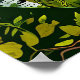 Ours noir assis dans une forêt verte luxuriante entourée de bouleaux, encadrée de feuillage décoratif.