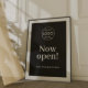 Un logo d'entreprise moderne noir horaires d'ouverture affiche avec typographie classique dans un style minimaliste. Le modèle peut être facilement mis à jour avec le logo de votre entreprise et les heures d'ouverture.