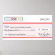 Customize every detail from your business logo, the "Pay to the Order of" line and a specific memo to reflect the reason for your donation. The professional layout mirrors a standard bank check for authenticity, providing a formal yet exciting prop for winners and representatives to hold during commemorative snapshots. High resolution print on poster paper, and available in a range of colors to complement your brand.