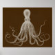 Extra large enchanting octopus print by Lord Bodner in brown; looks incredible divided into thirds and framed as a triptych, or left as is. Wonderful show stopper.