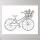 Illustration simple du vélo féminin. Le panier avant est rempli de fleurs. Fabriqué pour une coloration facile.