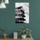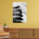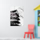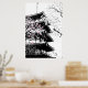 Affiche Pagode japonaise noire/blanche avec fleurs de ceri