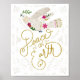 Une affiche ornée, illustrée à la main, montrant une colombe de paix et l'expression Paix sur Terre.