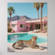 Apportez des vibes audacieuses et ensoleillées dans votre maison grâce à cet imprimé d'art saisissant, avec un majestueux léopard au bord de la piscine, dans une maison de rêve rétro rose Palm Springs. Avec ses palmiers imposants, ses dorsales de montagne et son éclat de glamour vintage, cette pièce capture le parfait mélange de sauvage et de chic.