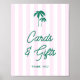Cette affiche téléchargeable "Cartes & Cadeaux" présente un charmant arrière - plan rayé rose-preppy qui ajoute une touche d'élégance et de féminité, créant une atmosphère dynamique et accueillante. En haut de l'affiche, des palmiers verts dessinés à la main évoquent la beauté luxuriante de Palm Springs, ajoutant une touche tropicale ludique. Embrassant l'esthétique rétro, la police manuscrite transporte vos invités dans un paradis moderne du milieu du siècle, ce qui en fait l'idéal pour ceux qui apprécient le charme et le style vintages.