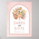 Feuilles tropicaux de palmiers séchés, pampas herbe et fleurs de protéa doux roux arche rose cartons botaniques et cadeaux poster mariage. Ce magnifique design mariage est orné d'un cadre en arc sur arrière - plan couleur rose. Dans le cadre il y a votre texte, un bouquet de feuilles de palmiers séchés, des fleurs de protéa et de l'herbe de pampas.