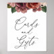 Pancarte Cartes et Cadeaux avec des fleurs aquarelles bourgogne et rose pour aller avec la collection Elégant Automne de la boutique Adore Paper Co. sur Zazzle.