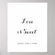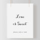 Cette pancarte d'amour de calligraphie moderne Love Is Sweet est parfaite pour un mariage rustique ou une fête prénuptiale. Le design simple et élégant présente une typographie classique et fantaisiste en noir et blanc.